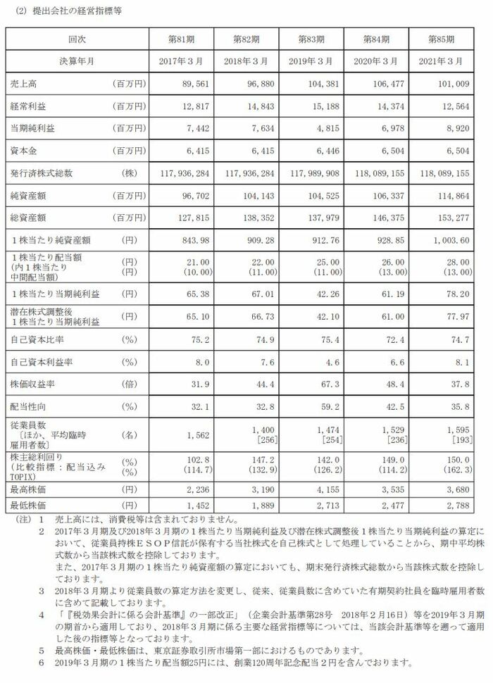 2017年3月期から2021年3月期までの5年間の配当について見てみましょう。