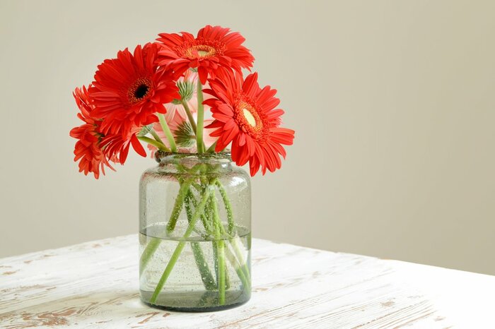 明るく鮮やかな花色と花弁のたくさん付いた花がステキなガーベラ。オレンジの他に白やピンクの花色もあります。品種改良が進んでいて、種類も豊富。いくつかの種類を育てると、花瓶にいけたときもオシャレです。