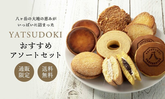 そんな八ヶ岳発の大地のおいしさを提供する「YATSUDOKI」ブランドの中から、代表的な6種類24個のスイーツを詰め合わせたのが今回のアソートセットです。どの商品も、自然の恵みがいっぱいに詰まったとっておきのスイーツで「おやつの時間」が楽しめるラインナップとなっています。