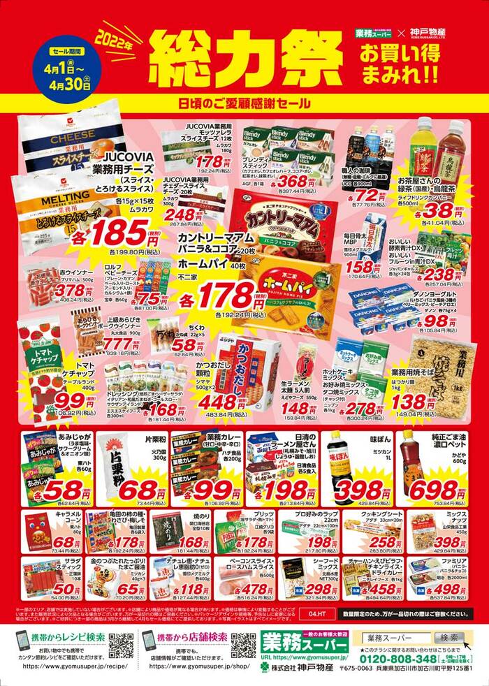 4月からはじまる【業務スーパーセール】お得まみれ「超安月間」損なし特売商品 2022.04.04 10:45 公開 執筆者中川 雅美 copy URL 目次[開く] 感謝セール「大総力祭」お買い得まみれ 関西エリア(大阪府) 参考資料 エブリデイロープライスを楽しもう 関東エリア(東京都) 東京エリアでは、焼きそば(1kg)138円や、とまとケチャップ(400g)99円など、純正ごま油(600g)698円など、爆弾価格の商品がランナップ。(すべて税別) 画像出典:業務スーパー公式 すべての画像を見る(2枚) 関西エリア(大阪府) < 1 2 3 > 関連タグ #業務スーパー 注目コンテンツ 上皮内がんも対象になるがん保険。1番人気のがん保険は?[PR] 女性特有のがんは40代から増える?女性向け医療保険で備える[PR] 30秒でオススメの医療保険の特約がわかる!保障で悩むならまずは診断[PR] あわせて読みたい