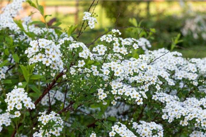 白い花が咲く庭木や多年草を選んで組み合わせれば、憧れのホワイトガーデンを作ることができます。白と緑のコントラストが涼やかでナチュラルな庭になることでしょう。