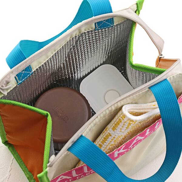 また、バッグはお出かけに便利な保冷タイプ。お弁当などを入れてランチタイムに使ったりするのにちょうどいいサイズとなっています。外側にはポケットもあり、ハンカチなどを入れるのに便利です。