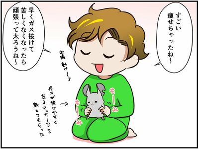 漫画家の祭さんは、おみくじちゃんとあみだちゃんというチンチラの母子、元保護チンチラの福くん、デグーの棟梁ちゃんというネズミさんたちと一緒に生活しています。