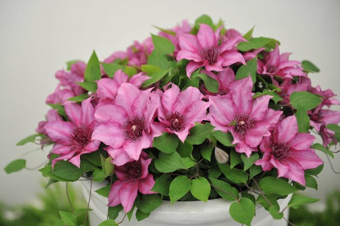 赤や青、白や混色など、色鮮やかでおしゃれな花が魅力のクレマチス。シンプルな美しさの一重咲きや、ゴージャスな花を咲かせる八重咲きなどさまざまな品種があります。四季咲きを選べば、春から秋にかけ長い間花が楽しめますよ。