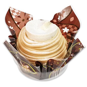 熊本県産和栗カスタードクリームをしのばせたスポンジに、シャンテリークリーム・熊本県産和栗クリームを絞っています。また、上部にも熊本県産和栗カスタードクリームを重ねた贅沢なモンブランです。