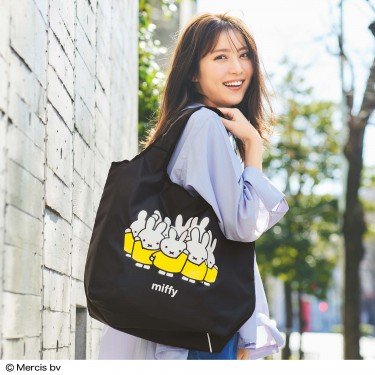 付録として高い人気を誇るミッフィーコラボ。今回は保冷・保温機能が付いたミッフィーの折りたためるビッグバッグが登場しました。ブラックのバッグには表面と裏面、それぞれにキュートなミッフィーがデザインされています。