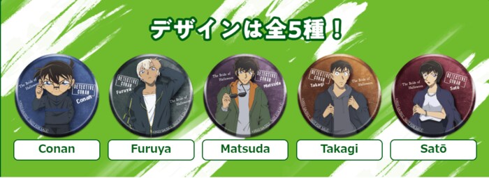 対象のお菓子を一度に2個(組合せ自由)買うと名探偵コナンオリジナル缶バッジが1個もらえます。