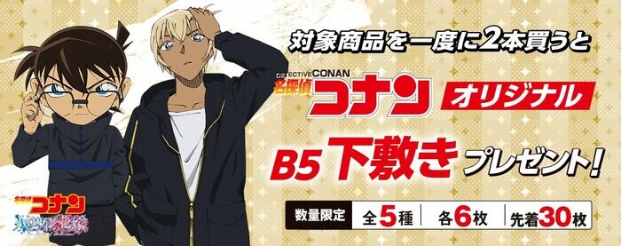 対象の栄養ドリンクを一度に2本(組合せ自由)買うと名探偵コナンオリジナルB5下敷きが1枚もらえます。