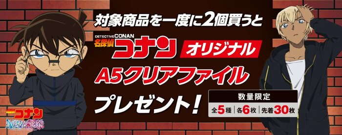 対象のアイスを一度に2個(組合せ自由)買うと名探偵コナンオリジナルA5クリアファイルが1枚もらえます。