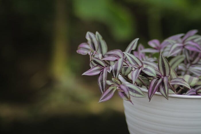 厚みのある葉に、美しいカーブを描いたような模様がオシャレなトラディスカンティア。日光をしっかりと浴びることで葉の色はキレイな紫色になり、華やかな印象になります。