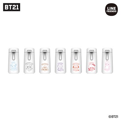 ボトルは270mLのコンパクトで実用的なステンレスボトルのタンブラーです。種類は全7種で、「BT21」キャラクターがそれぞれのキャラクターカラーでプリントされています。