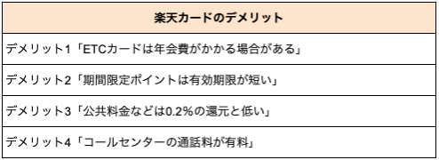 ここからはちょっと違った視点で、楽天カードのデメリットを紹介していきます。