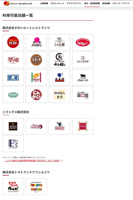 ※その他の詳細は、すかいらーくホールディングス「株主優待について」より、最新の情報をご確認ください。
