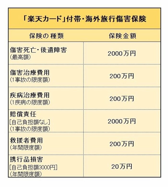楽天カードには海外旅行損害保険が付帯しています。