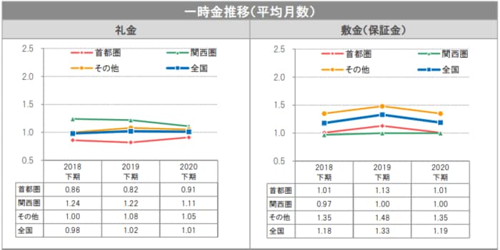 敷金や礼金は、地域差が大きい費用でもあります。関西圏は、礼金が高い分、敷金は安め。首都圏は逆に礼金が安く、敷金は関西圏よりやや高い傾向にあります。