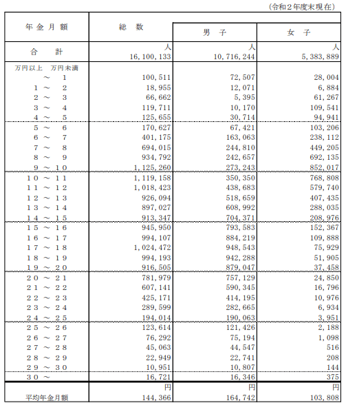厚生年金を15~16万円もらえるのは、全体の約6%となりました。