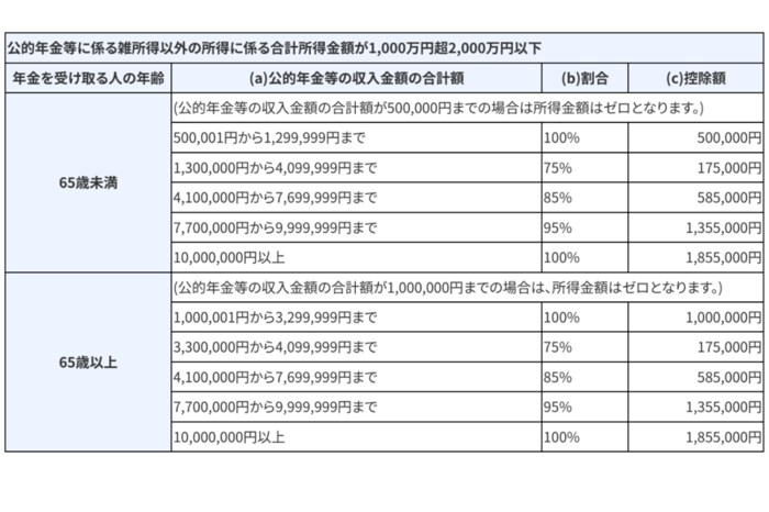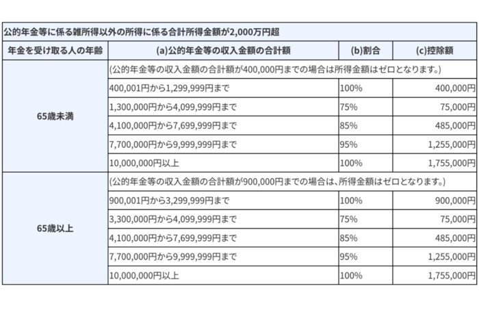 年金方式で受け取る時は「公的年金等控除」の対象となり、年齢及び年金額に応じた額が所得から控除されます。