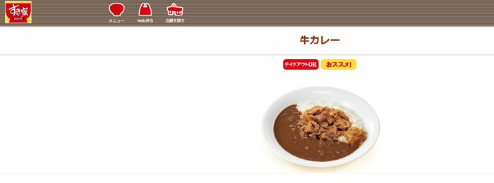 すき家の「牛×カレー」メニューは、その名も「牛カレー」。詳しく見ていきましょう。