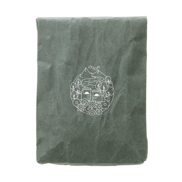 「PEVA」という素材をバッグ内側に使用。汚れたときはよく絞った布で軽くふき取ることで、繰り返し利用できます。背面にはアースデーロゴがデザインされているのがポイントです。