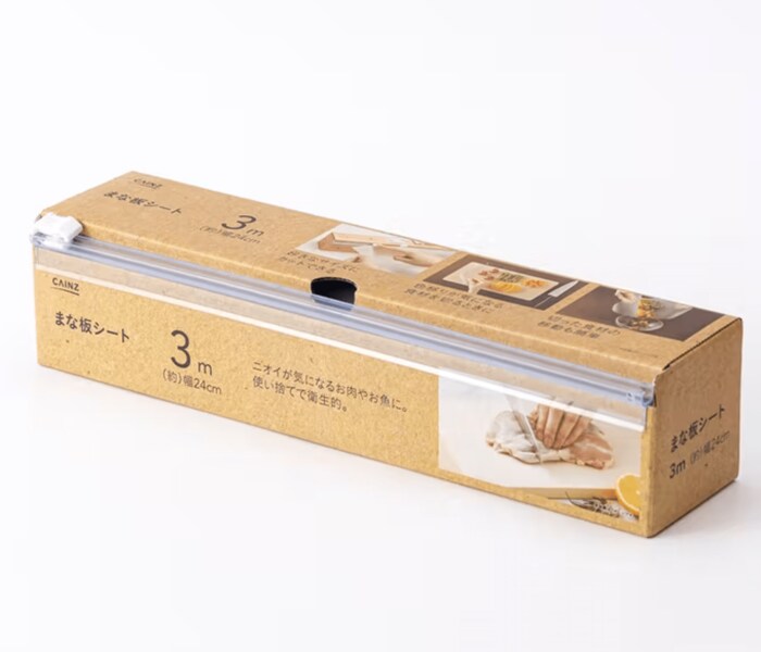 まな板の上に敷いて食材をカットすることで、まな板へのニオイや色移りを防止することができるシートです。使い終わったらそのまま捨てればいいので、洗い物を減らせるだけでなく、生ものを切った後に発生する、食器類の消毒の手間も必要ありません。