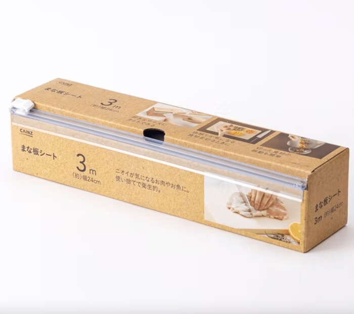 好きな長さにカットしてまな板の上に敷くだけで、肉や魚の雑菌対策にもなる、便利なシートです。食材ごとに使い捨てできるため、まな板を洗う手間も省け、ニオイや色が残る心配もなくなりますね。また、切った食材をお皿に移す際にも、シートを持ち上げて運べるので簡単です。