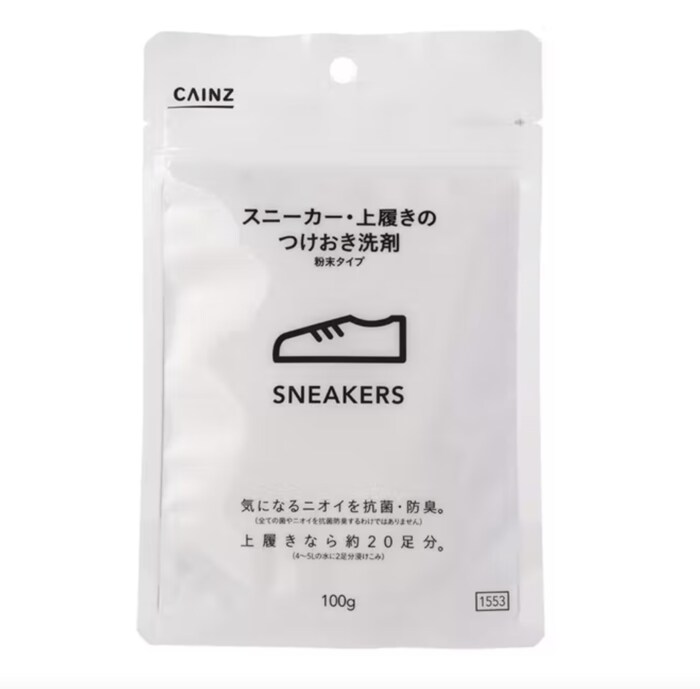 スニーカーや上履きの油汚れや黒ずみ対策に、抗菌と防臭効果が期待できる洗剤です。上履きなら4~5Lの水に本品を8g(スプーン2杯程度)入れ、靴の中まで浸るようにしっかりと30分程度つけ込みます。