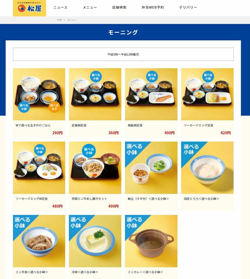 【牛丼】松屋のモーニング「どんなメニューがあるの?」