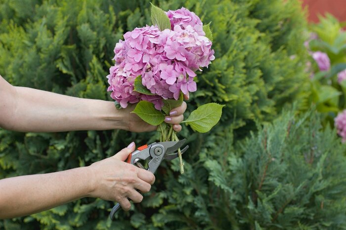 挿し芽に適した時期は4~7月。元気に伸びている茎を先端から10~15センチほどの長さに切ります。その際、ハサミで切り口を斜めにカットするのがポイント。