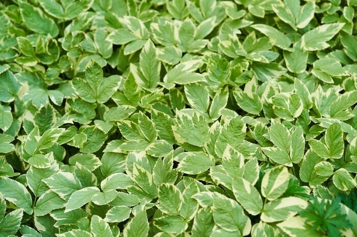 耐寒性多年草のエゴポディウムはグランドカバーとして人気のリーフプランツ。特に「バリエガータ」という品種は斑入りの葉が美しく、初夏にレースのような可憐な白い花を咲かせます。※参考価格:600~700円前後(3号ロングポット)