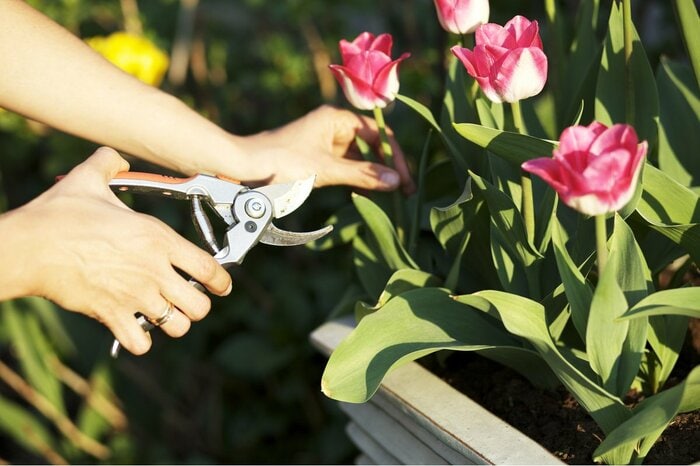 花びらが完全に散ってしまうまで待っていると、球根はその間に栄養を花に奪われ続けます。できれば完全に咲き終わる前に花をカットしましょう。切り取る時期が早いほど球根の体力を温存できます。