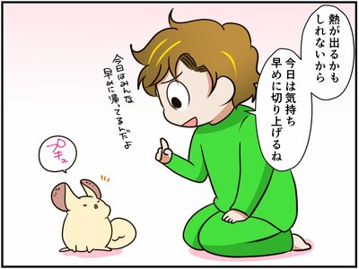 チンチラのおみくじちゃんの体調不良についてのお話がここ最近続きましたが、今回は箸休め。祭さんは、新型コロナワクチンの3回目の接種をしてきたときのお話です。ワクチン接種の副反応に苦しむ祭さんをみて、チンチラの福くんがとった「ある行動」とは?