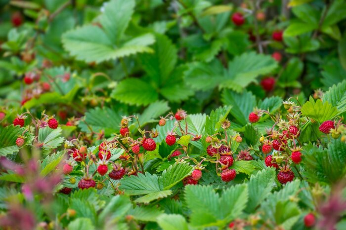 ハーブとしておなじみのワイルドストロベリーもグランドカバーとして重宝します。春に咲く白い花と赤い実が庭を可愛らしく演出してくれますよ。