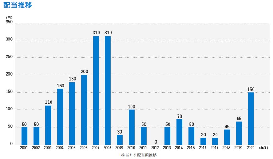 商船三井はそれぞれ以下のとおり配当を出しています。
