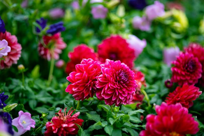 オシャレな見た目の庭や花壇にするには、同じ植物だけでなく異なる種類の花をバランスよく配置してみましょう。草丈が高い植物は背後に、低い植物は手前に配置するとカンタンに立体感がでます。