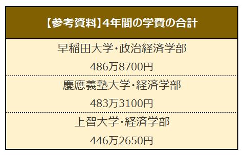 先ほどの、国際基督教大学(ICU)教養学部と学習院大学文学部を4年間で卒業するためには、おおむね500万円~600万円は必要となることがわかりました。