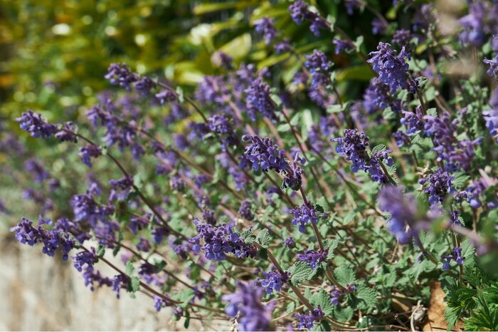 暑さ寒さに強く、丈夫な多年草のキャットミント。初夏から秋まで花を咲かせ、花後に切り戻すとまた花を咲かせてくれます。高い草丈に淡いブルーの花色が涼し気な雰囲気。