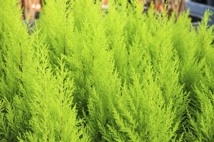 北欧に多い針葉樹の森。コニファーで森林を再現することで北欧っぽさが演出できます。※参考価格:1000(ポット苗)~4000円前後(6号鉢)