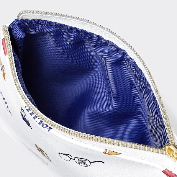 ファスナー付きで便利なポーチです。オフホワイト、ブラック、レッドの3色を展開。イラストがかわいいアイテムです。