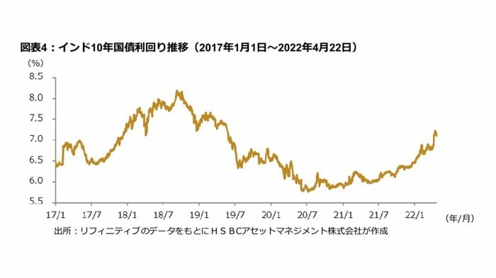 中長期的に見れば、インド経済の優位性が相対的に際立つと思われる。こうした観点から、インド国債の比較的高い利回り水準は引き続き魅力的であると考える。