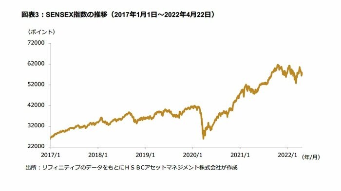 構造改革などを通じて中期的に堅調なインドの経済成長が期待出来ることは、株式市場にとり支援材料と考えられる。また、設備投資の持ち直しや融資の回復も同国経済、ひいては株式市場にとり追い風になると思われる。