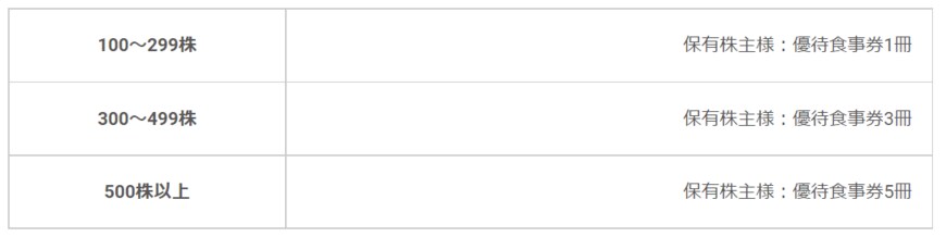 今回の検証は100株保有を想定しているため、受け取る優待は優待食事券1冊×4回となります。