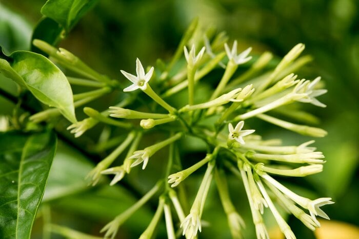 初夏から秋にかけて白く細長い花を開花させ、花からはジャスミンに似た香りがすることから「ナイトジャスミン」とも呼ばれています。