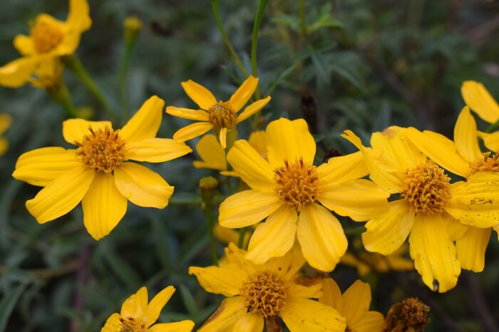 晩夏から秋にかけ、コスモスに似た黄色の花を咲かせるレモンマリーゴールド。宿根マリーゴールドとも呼ばれています。