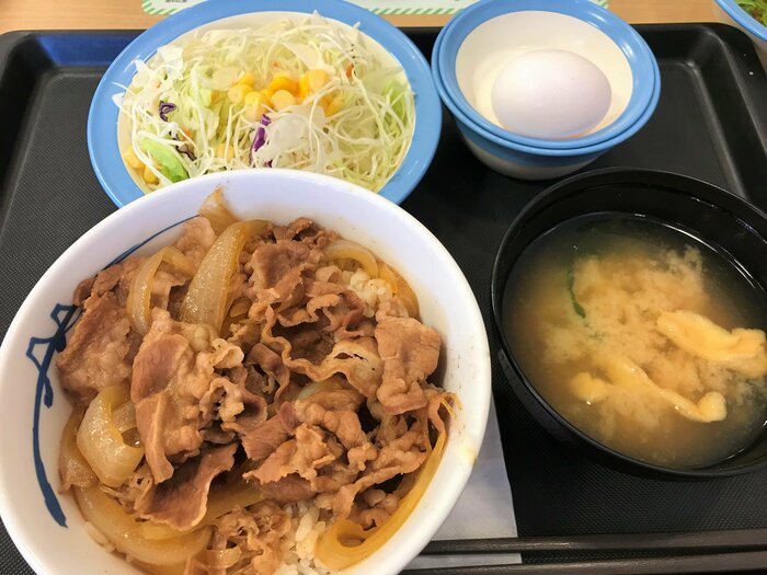 今回は、松屋のランチセットの中から、「牛めしランチ(生玉子)」をオーダーしました。