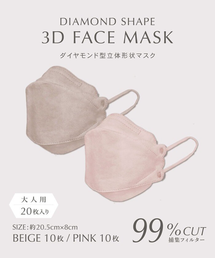 【ダイヤモンド型立体形状マスク20枚入り】330円(税込)