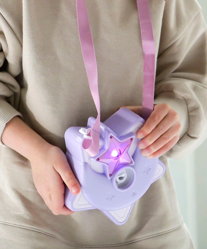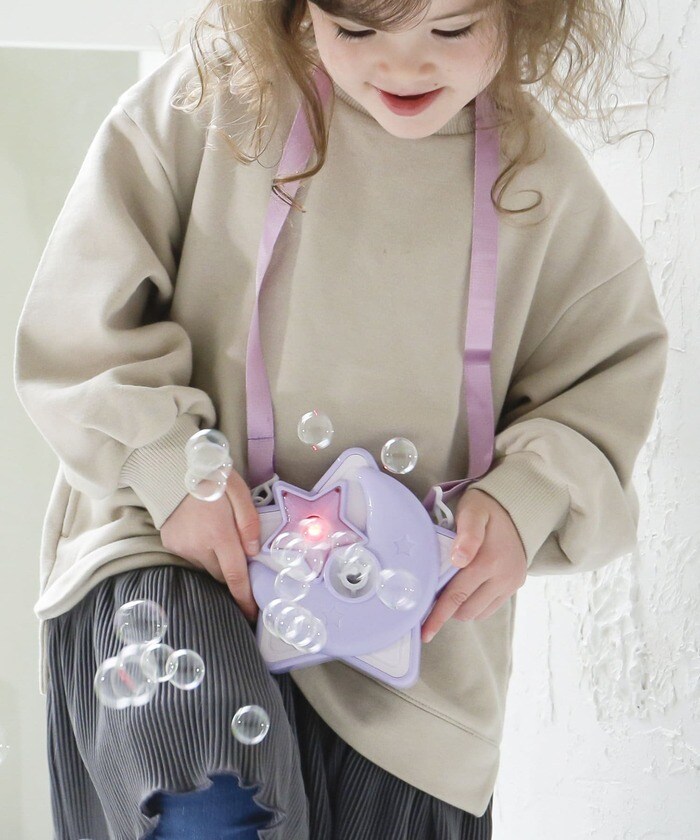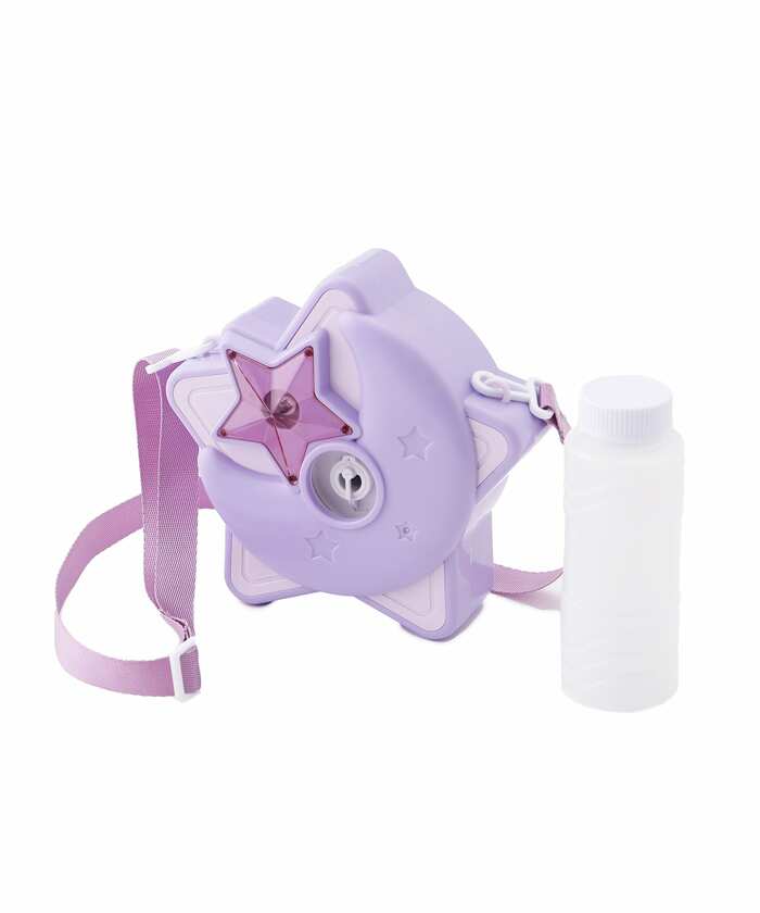 魔法使いようなデザインがかわいく、首や肩から下げてシャボン玉を楽しめます。アジャスターが付いているので、サイズ調節も可能です。