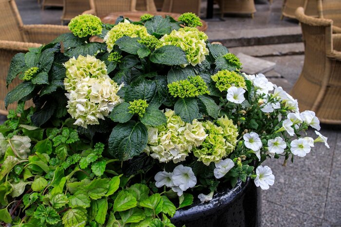 アジサイの植え替え適期は3~4月。この時期に植え替えをすることで、アジサイへのダメージを最小限に抑えることができます。根鉢の古い土を三分の一ほど落とした後に植え付け、水をたっぷりと与えます。