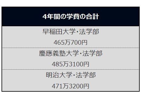 早稲田・慶應・明治の法学部「4年間の学費はいくら?」