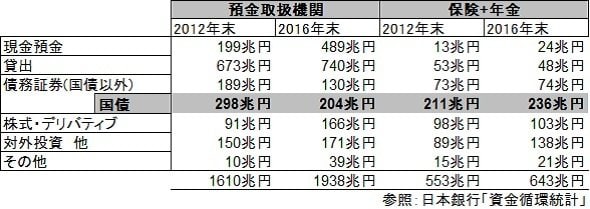2012年末と比較すると、現在は両者ともかなり違う資産の形になっていることがわかります。つまり、量的・質的金融緩和(QQE)導入で以下のような副作用が出てきたと考えることができるでしょう。