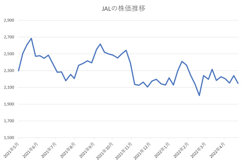 2021年5月13日の終値は2,244円で、2022年5月13日の終値は2,149円でした。